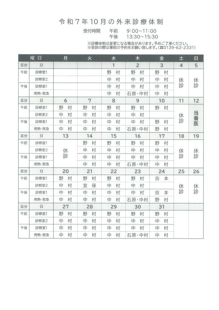 ※急患は随時対応します。